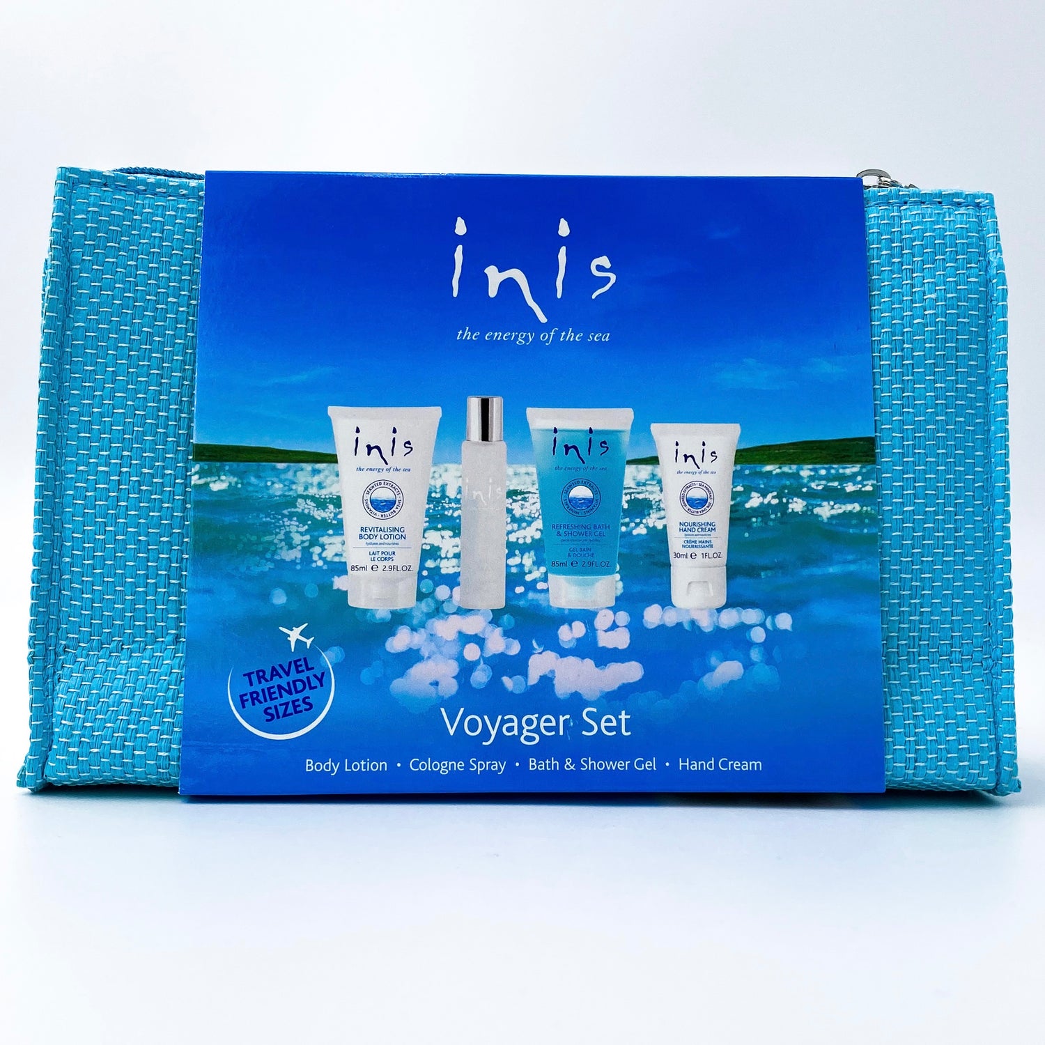 Take your favourite refreshing scent anywhere you go with this set of travel-friendly sizes in our reusable voyager bag! Our gift set includes a 15ml/.5 fl. oz. Travel Size Inis the Energy of the Sea Cologne, a 30ml/ 1 fl. oz. nourishing hand cream, plus a 85ml/2.9 fl. oz. seaweed-enriched Revitalising Body Lotion and Refreshing Shower Gel.