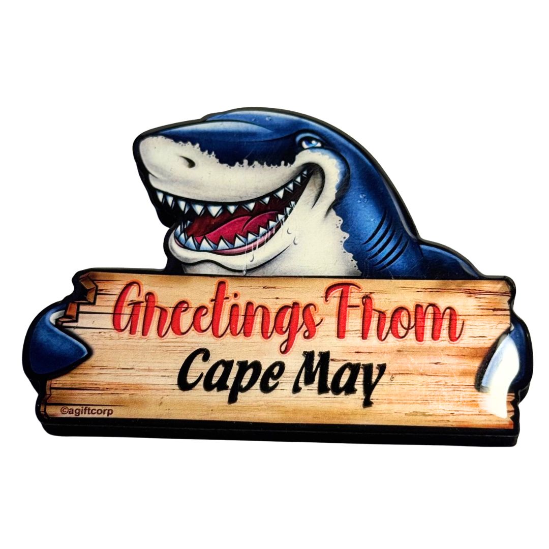 Greetings from Cape May Shark Magnet Approx 3.75" x 2.5" from $5.99 /per Produc variants Default Title Qty. Add to Cart This item is a recurring or deferred purchase. By continuing, I agree to the cancellation policy and authorize you to charge my payment method at the prices, frequency and dates listed on this page until my order is fulfilled or I cancel, if permitted. Couldn't load pickup availability Refresh