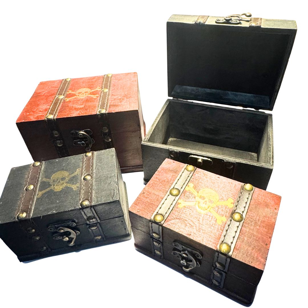 Use this fearsome Pirate Skull Treasure Chest to guard yer booty like a true buccaneer. This menacing skull-emblazoned chest be perfect fer storin' yer most prized treasures, whether doubloons, jewels, or secret maps.